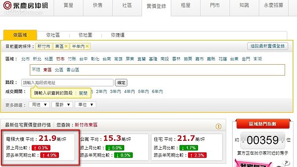 新竹市東區、新竹縣竹北市近期房價都上揚。(擷取自永慶房仲網)新竹房價(擷取永慶房仲網)新竹房價(擷取永慶房仲網)
