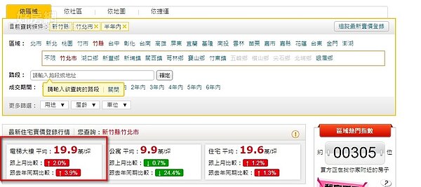 觀察新竹縣市最新住宅實價登錄行情,竹科所在的東區電梯大樓行情平均21.9萬/坪,較上個月小漲0.3%,跟去年同期比較則上漲4.9%;新竹縣竹北市電梯大樓平均19.9萬/坪,較上個月上漲2.0%,比起去年同期則上漲3.9%。